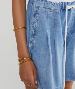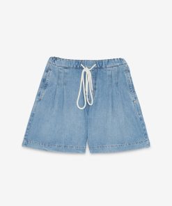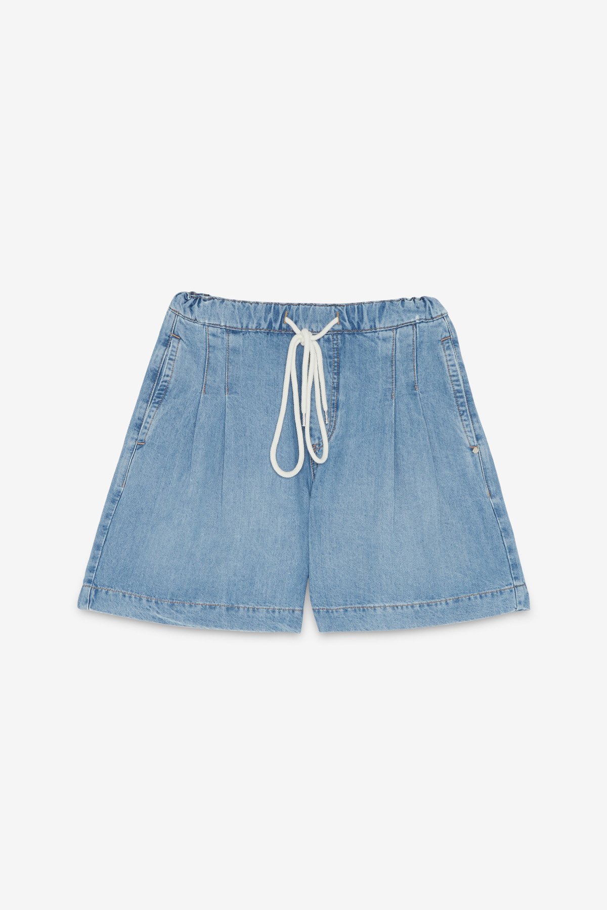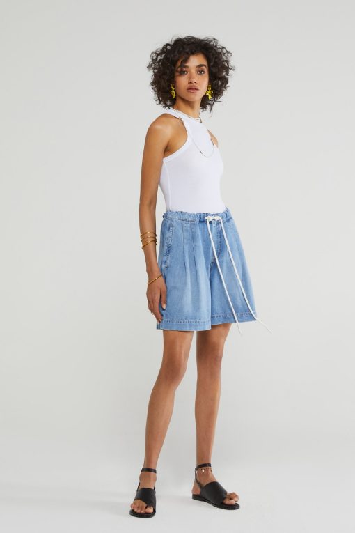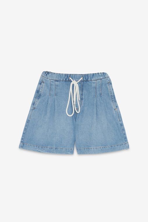 Denim bermuda jeans with drastring and cord