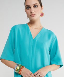 Fluid V-neck sweater with 3/4 sleeves