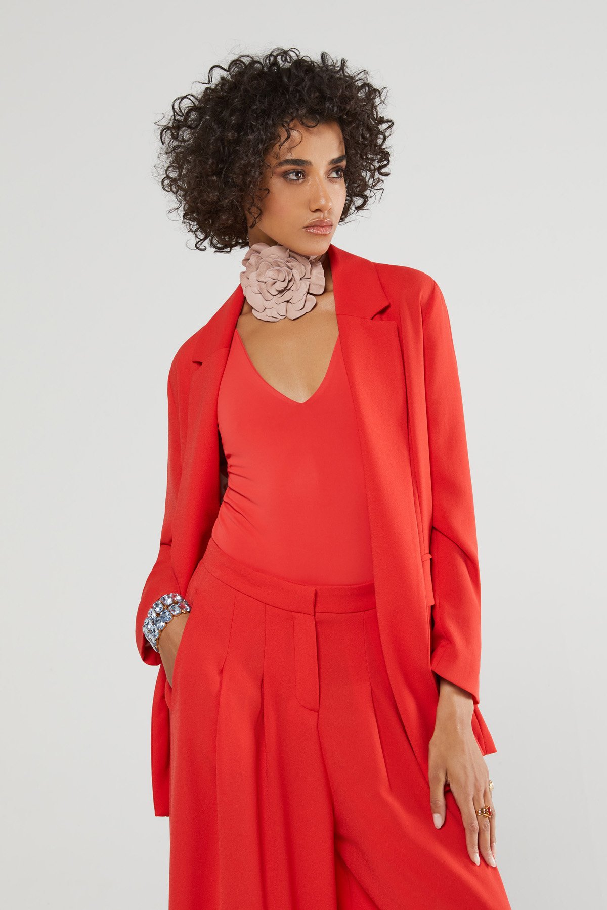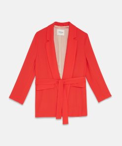 Jacket without buttons with matching sash and pockets