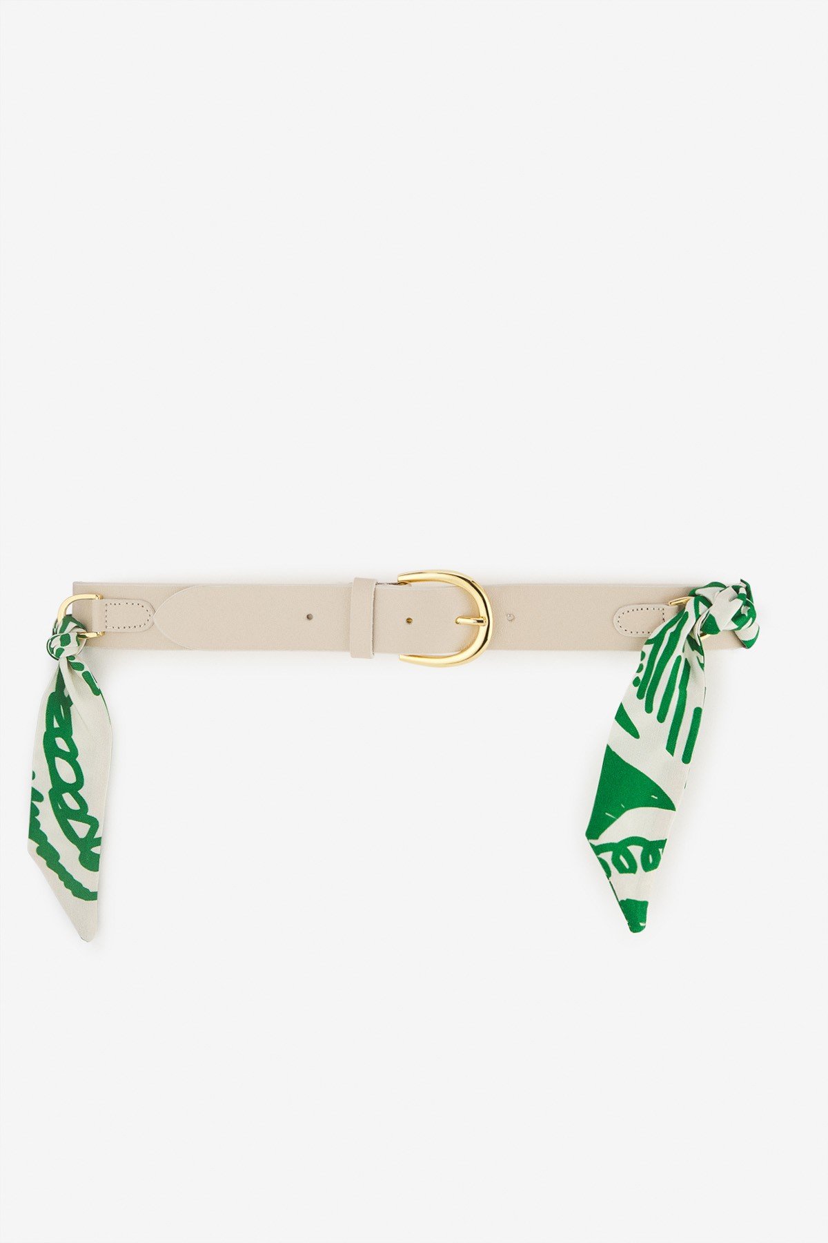 100% leather belt with metallic buckle and matching foulard