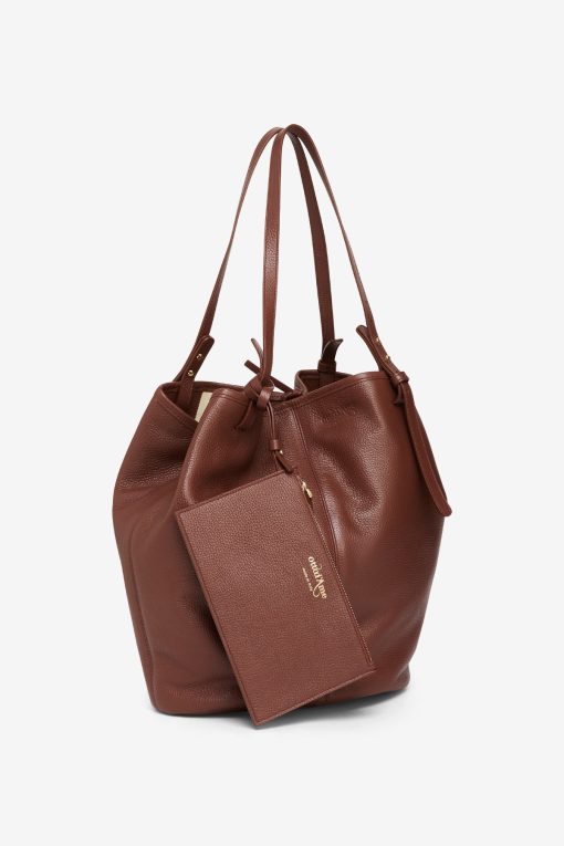 100% Leather shopper bag with a matching pouch and 100% cotton lining. 52X34X17 cm
