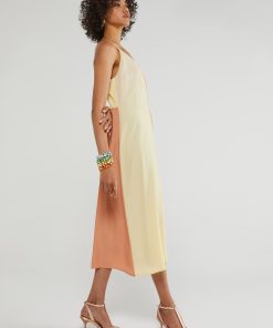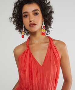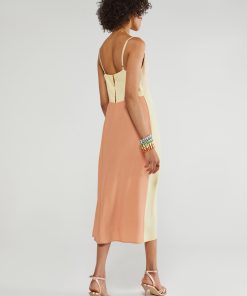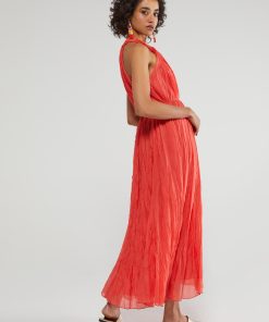 Printed viscose long dress with keyhole back opening and slits at the hem