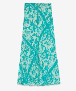Fluid 100% printed viscose long skirt