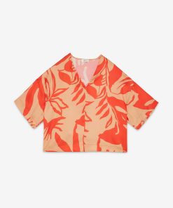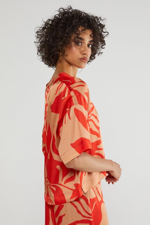 100% printed viscose V-neck sweater with 3/4 sleeves