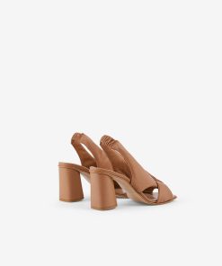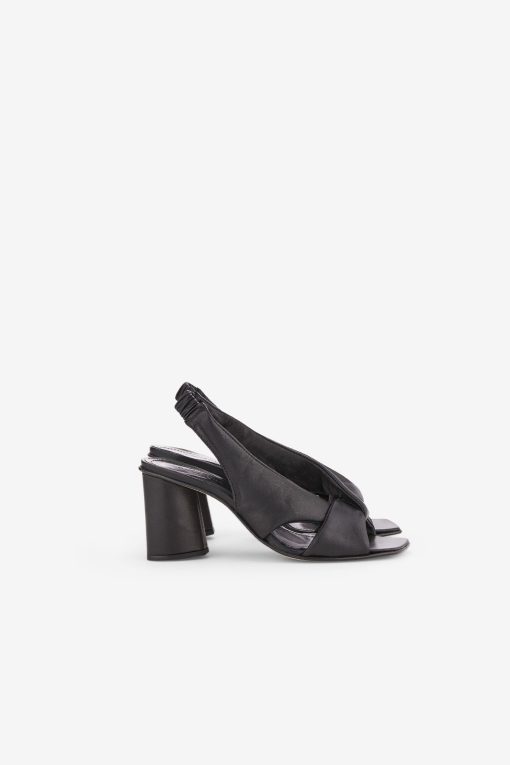 100% leather square toe sandals with high heel