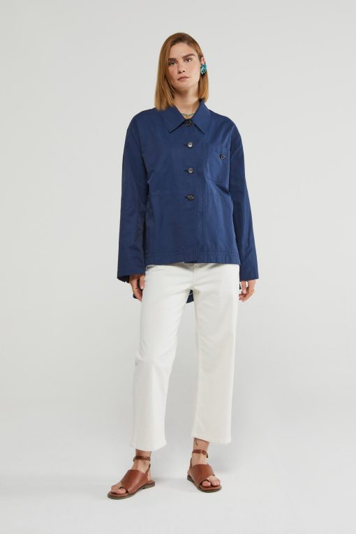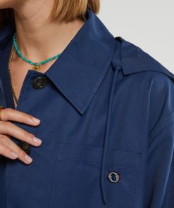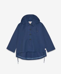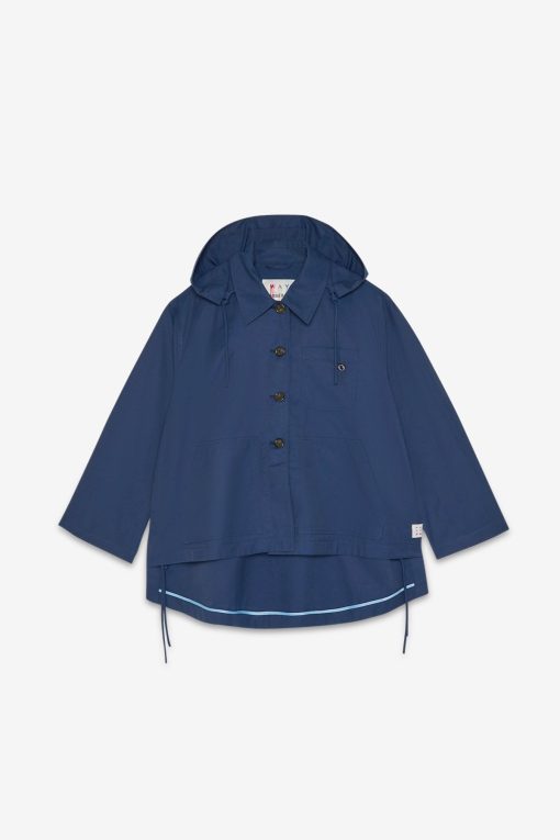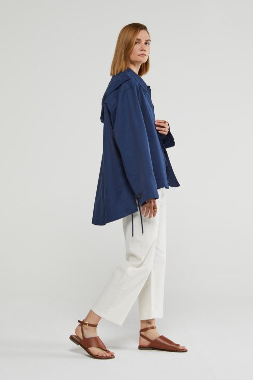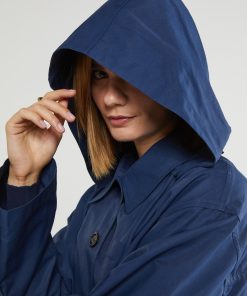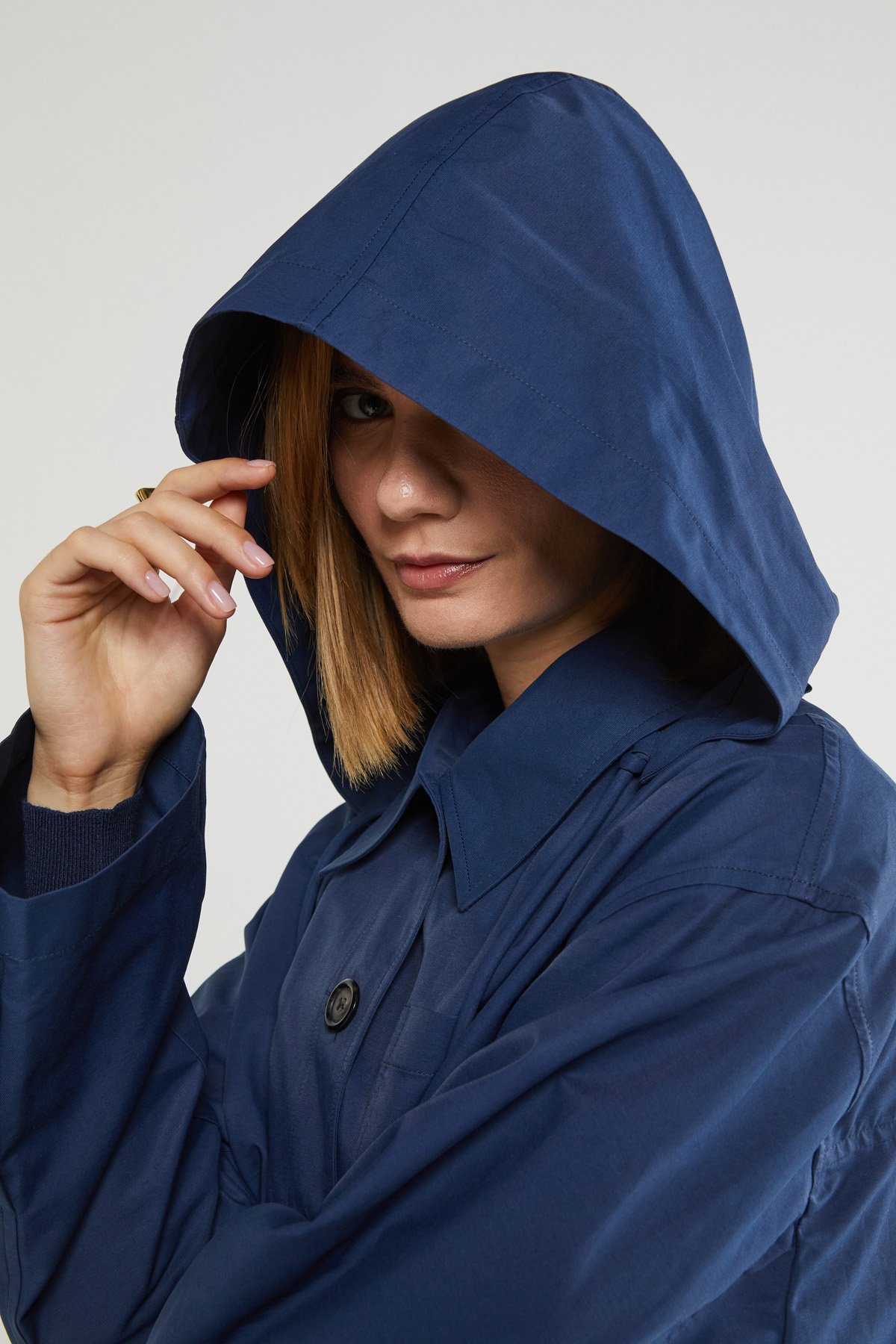 Short raincoat with hood and rounded hem