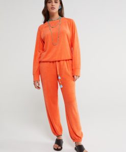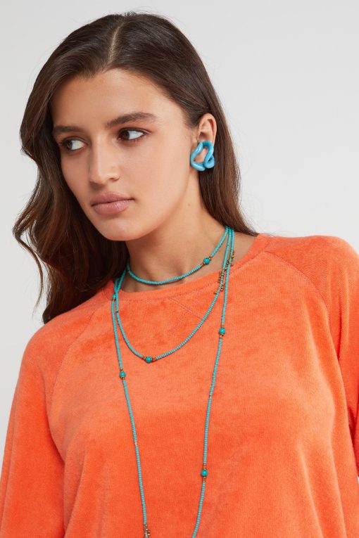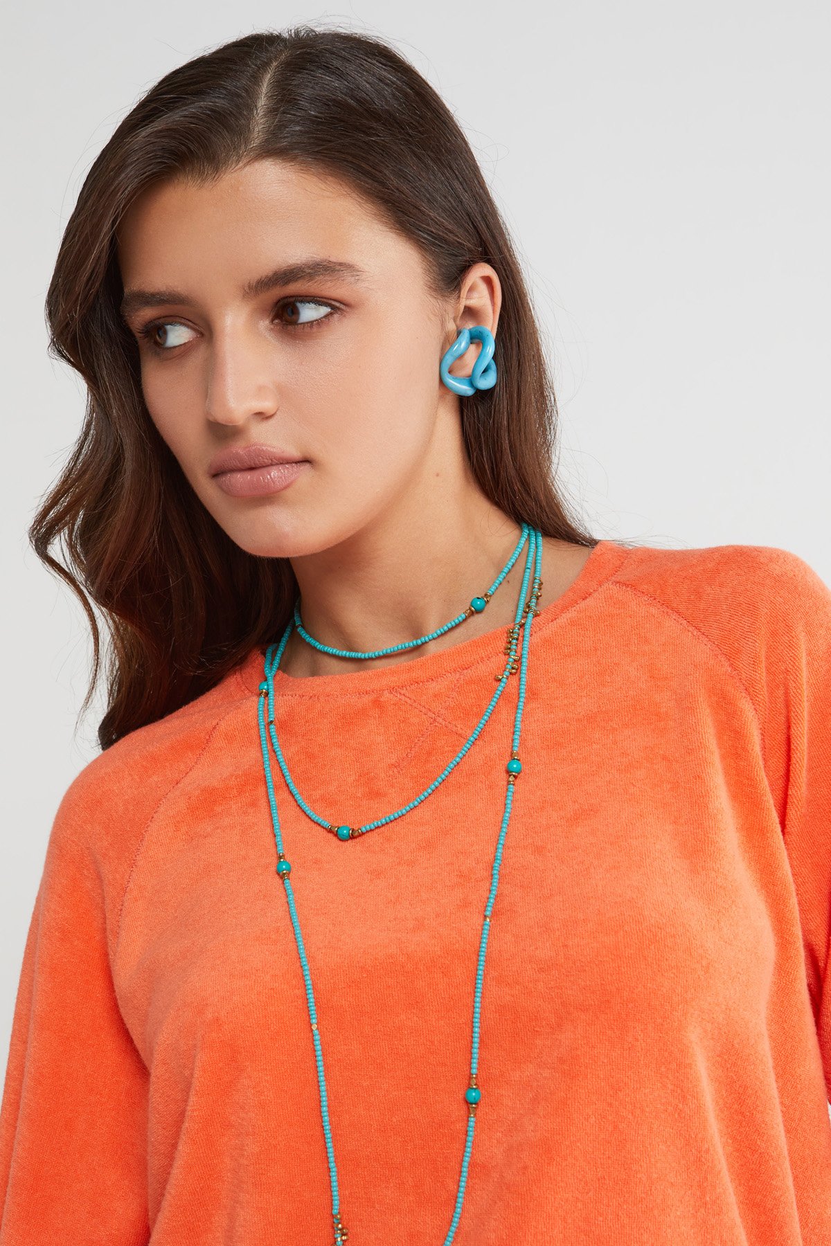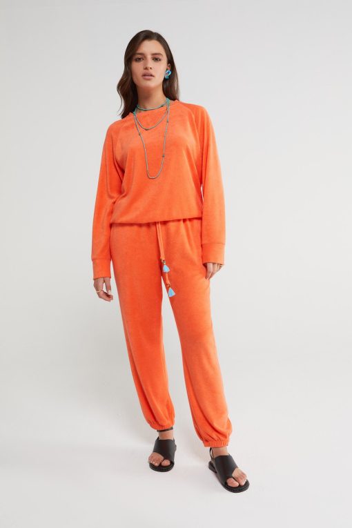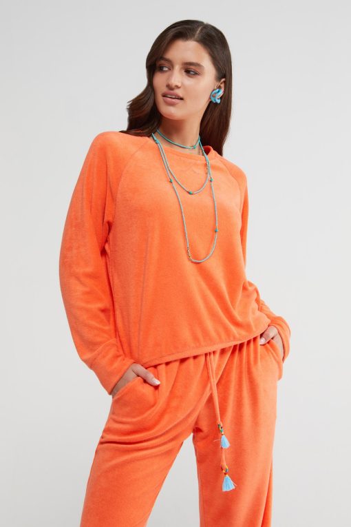 Modal cotton terrycloth long-sleeved sweatshirt with straight hem