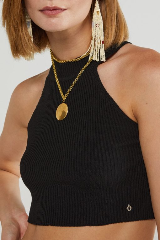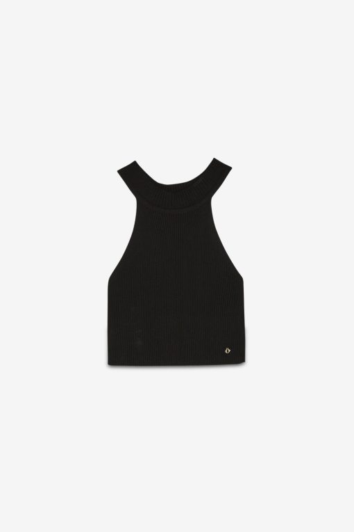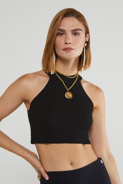 100% viscose cropped top with round neckline